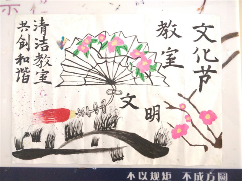 在教室文化节准备过程中,我院各个班级积极准备,充分发挥班级凝聚力,各班从板报设计、教室装扮、教室卫生、学生文明礼仪等4个方面着手,发挥学生的特长,展示学生的风采。同学们或写或画,或剪或贴,每个人都以班级主人的身份参与其中。同学将“美”融入到教室的各个角落,让教室里的一花一草、一字一句都和我们的同学有心灵上的交流,让每一个细节都有情感的温暖。在此过程中不仅确保了教室外观上的美观,更重要的是打造出独具特色的教室文化氛围。