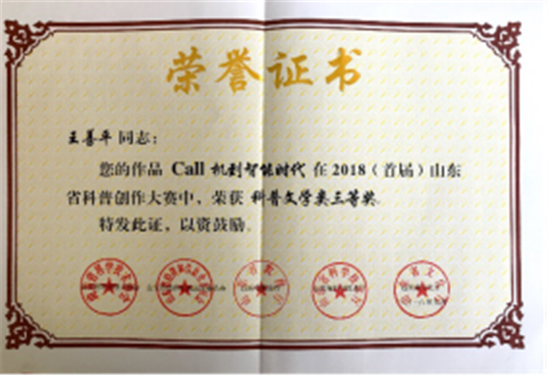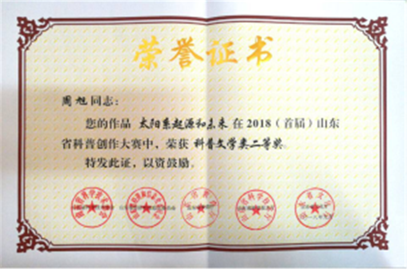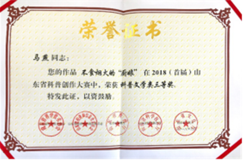 我校yl7703永利集团组织报送的作品在此次大赛中获得了骄人的成绩,参赛作品获得科普文学类二等奖1项,三等奖2项,分别为周旭老师创作的作品《太阳系起源和未来》、王善平老师创作的作品《Call机到智能时代》、马燕老师创作的作品《不食烟火的“厨娘”》,同时获奖教师被邀请成为山东省科协科普创作会员。