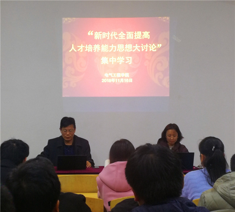根据《yl7703永利集团新时代全面提高人才培养能力思想大讨论学习研讨计划》安排,2018年11月16日,我院组织开展“新时代全面提高人才培养能力思想大讨论”集中学习活动,王平院长带领我院教师学习了《新时代高等教育研究与高等教育内涵式发展——从教育研究视角看总书记 5·2讲话》,详细解读了吴岩司长的讲话。