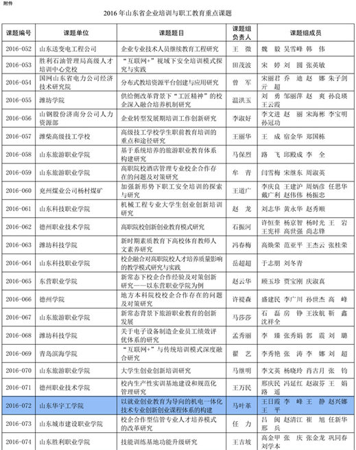 山东省企业培训与职工教育重点课题面向全省企业和高校开展,主要围绕企业全员培训工程、人才培养、企校合作和实训基地等方面进行课题研究。目前,立项课题负责人正积极组织力量开展研究,争取如期结题,并切实提高立项课题成果的研究质量。