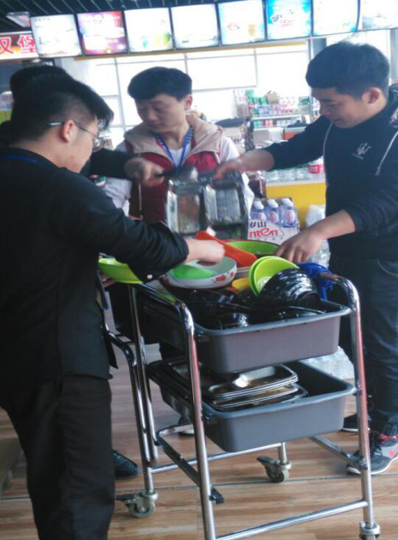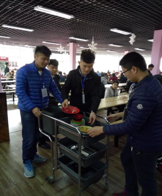 3月15日下午,同学们按时来到华硕餐厅,首先接受了餐厅工作人员的细心培训,同学们掌握了工作基本要领,然后由学生会主席进行了人员分组、分工,大家干劲十足,经过一个半小时的工作,同学们圆满完成了工作任务。