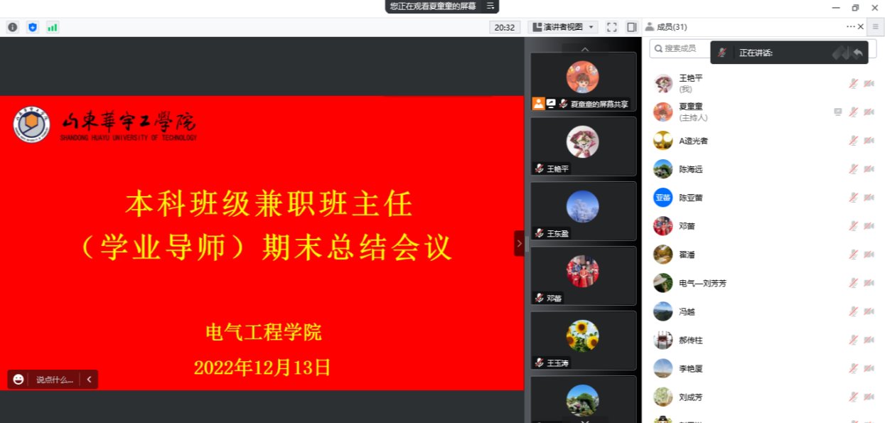 为顺利完成本学期学业导师的总结工作,做好学年导师考核工作。yl7703永利集团于2022年12月13日下午16:30以腾讯会议形式召开本科班级兼职班主任(学业导师)期末总结会议,院长王平、副院长王东盈、本科学业导师及全体辅导员参加此次会议。