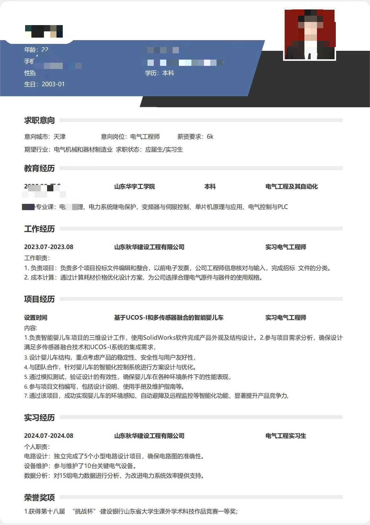 大赛启动以来,得到同学们的积极响应,共收到参赛作品百余份。作品全面展现了电气学子在智能电网、新能源技术等领域的积累沉淀,彰显了新时代青年投身国家重点产业的责任担当。评审团由学院就业指导教师、企业HR代表及专业教师组成,围绕简历结构完整性、内容真实性、格式规范性等核心维度展开评选。最终评选出一等奖3名、二等奖5名、三等奖7名。
