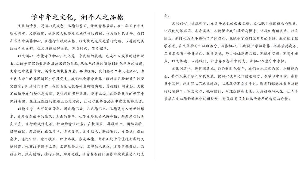 此次征文活动进一步涵养了学生的优良品德与自律意识,深化了素质养成教育成效。学院将持续深耕思政育人与大学生养成教育,厚植崇德向善的校园文明氛围,助力青年学子在品德修养的滋养下成长成才。