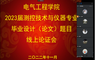2022年11月11日,测控技术教研室开展了2023届测控技术与仪器专业毕业设计(论文)题目线上论证会,对7名指导教师申报的40个毕业设计(论文)题目进行论证,主要从题目内容是否合适、任务目标是否符合人才培养目标、工作量是否饱满等方面与指导教师进行交流探讨。通过此次毕业设计(论文)题目论证,老师们更加明晰了专业培养方向和目标,为后期顺利开展毕业设计相关工作打下了良好的开端。