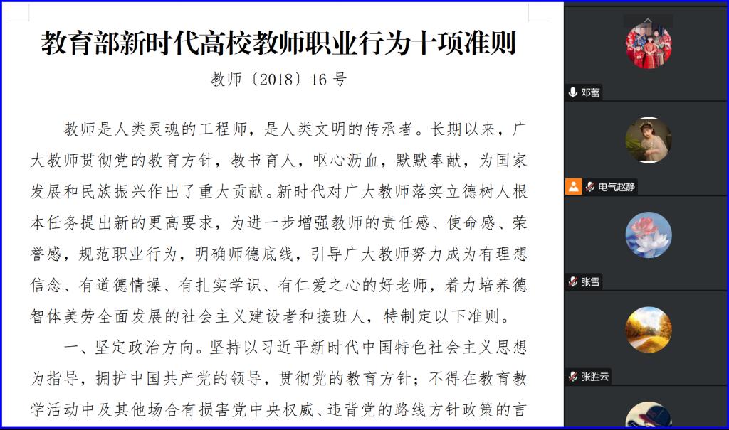 为严格贯彻落实党中央关于教师思想政治和师德师风建设工作的决策部署,进一步加强师德师风建设,发挥师德失范问题典型案例警示作用,12月8日至15日电气工程教研室组织开展师德师风警示教育活动学习并进行交流研讨。