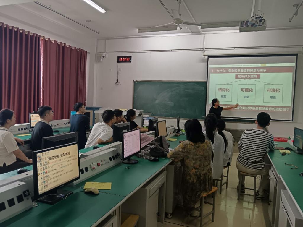 在培训过程中,张雪老师首先介绍了人工智能的基本概念和发展趋势,随后深入讲解了AI技术在教育领域的具体应用,包括个性化学习路径设计,智能教学辅助系统的构建,以及如何利用AI进行学生行为和成绩分析,通过实际案例,展示了这些技术如何被有效地融入教学活动中,提高教学互动性和学生学习效率。接着详细介绍了几种教育领域内已经成功应用的AI工具,如智能作业系统、在线自适应学习平台及模拟实验室,让教师对如何在自己的课堂中应用这些工具有了具体的认识和操作思路。