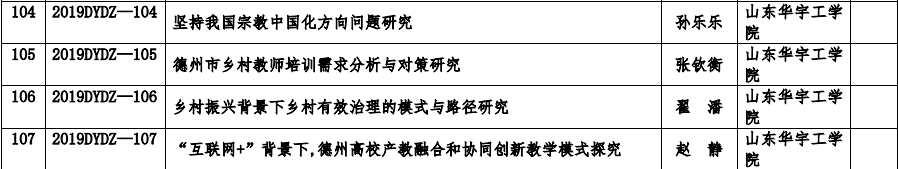 近期,德州市社科联发布了《关于公布第七届“调研德州”活动立项课题的通知》(德社科联[2019]10号)文件,全校共有51项课题获批立项,其中我院孙乐乐老师主持的《坚持我国宗教中国化方向问题研究》(课题编号:2019DYDZ-104)等4项课题获批立项。