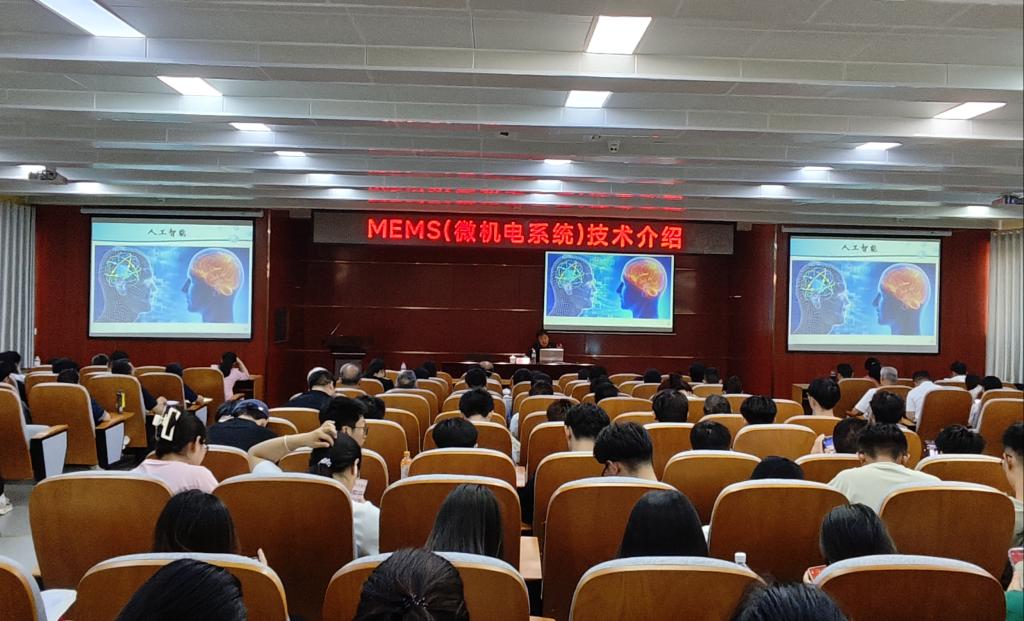 庄教授以“MEMS(微机电系统)技术”为主题,探讨了MEMS技术的特点、优势,制作工艺和发展趋势,及其在汽车行业、医疗健康领域、消费电子行业、信息领域、航空航天、国防安全等社会生活、工业生产领域的应用。因为现场有部分学生代表,庄教授还从做一个自信的人、做一个有原则的人、做一个会学习的人三个方面给同学们提出了几点建议。
