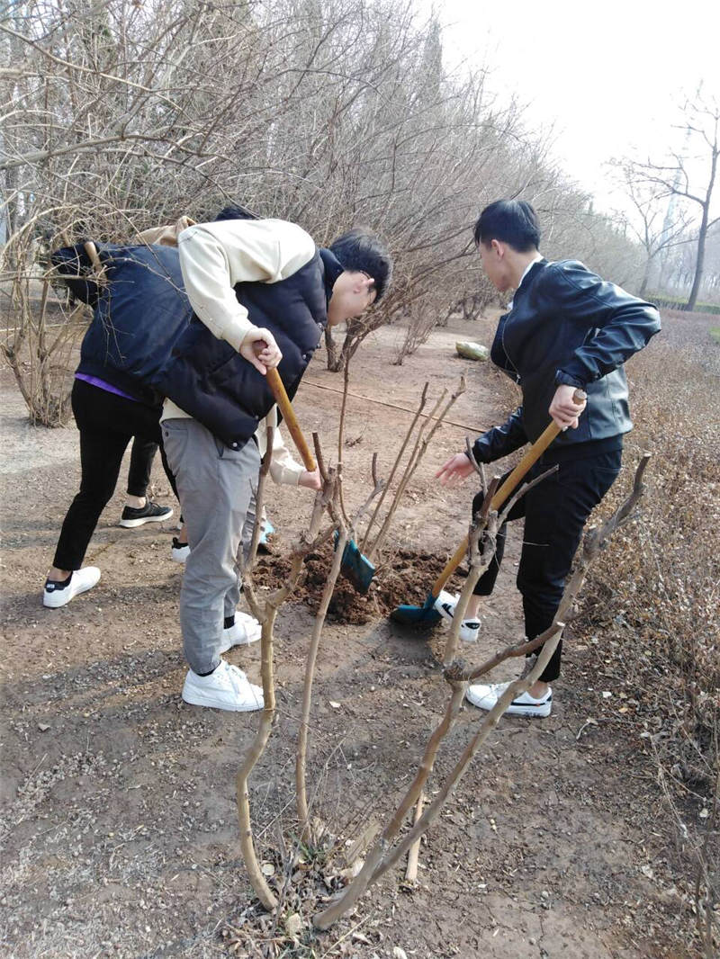 在植树现场,同学们热情洋溢、分工配合,浇水、除草、松土,一片忙碌景象,大家用实际行动撒播绿色,成就了春天里一道靓丽的风景线。此次活动不仅让同学们亲身体验植树的快乐,提高了大家参加社会实践活动的积极性,而且培养了同学们的合作精神,坚定了我院继续开展此类公益活动的决心。