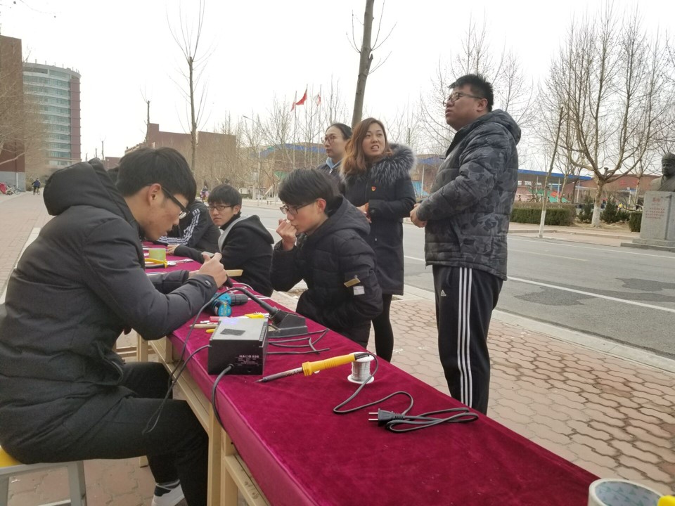 为了践行雷锋主题活动月,释放青春正能量,践行新时代的雷锋精神,弘扬新时代的主旋律。yl7703永利集团于2018年3月5日在十号楼前开展了免费维修小家电的学雷锋启动仪式,副院长王东盈、校团委办公室王利民主任、张文悦老师及yl7703永利集团全体辅导员老师共同出席了此次活动。此次活动开展时间为3月5日—3月26日,历时22天,服务于全校师生。