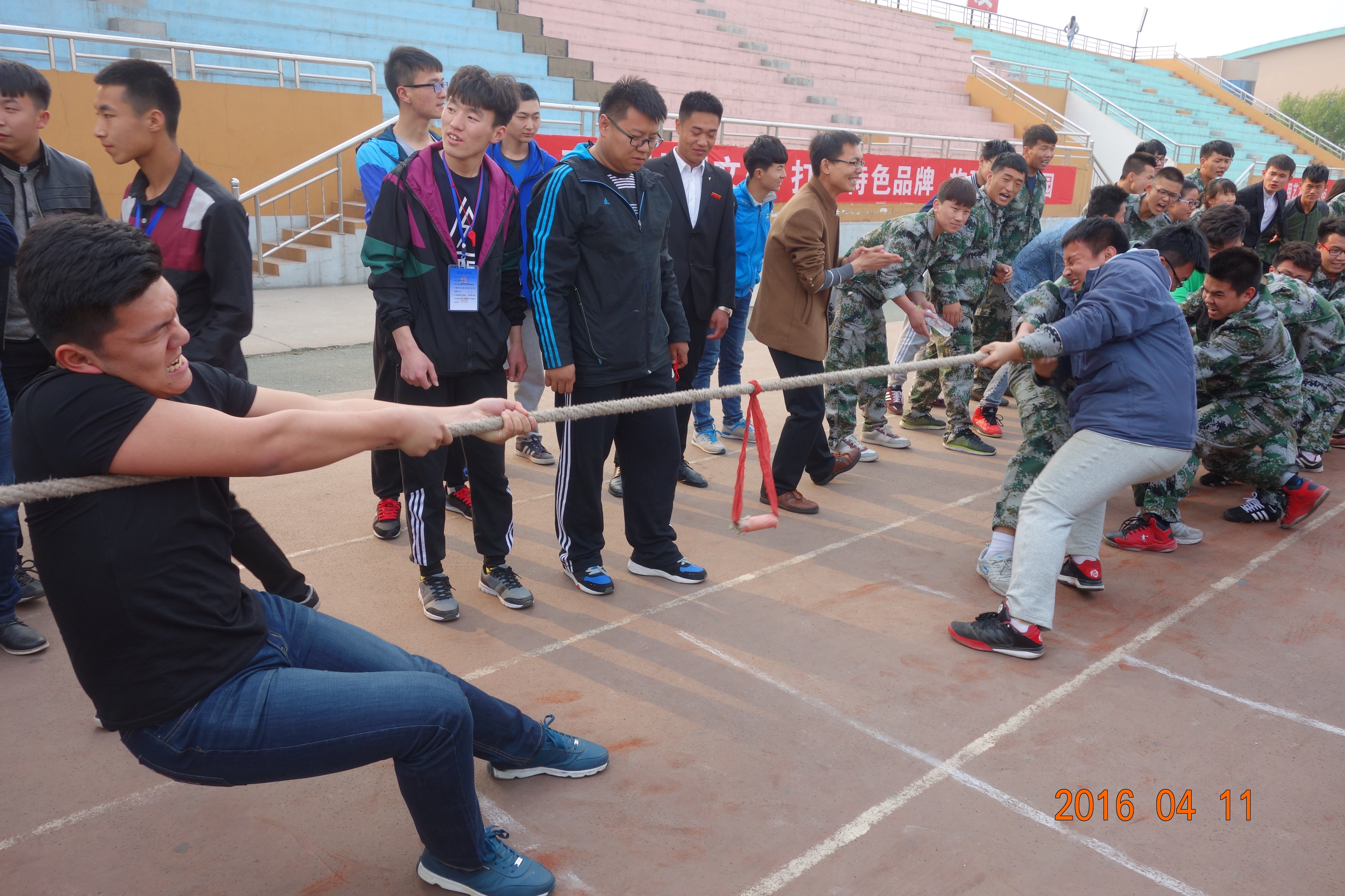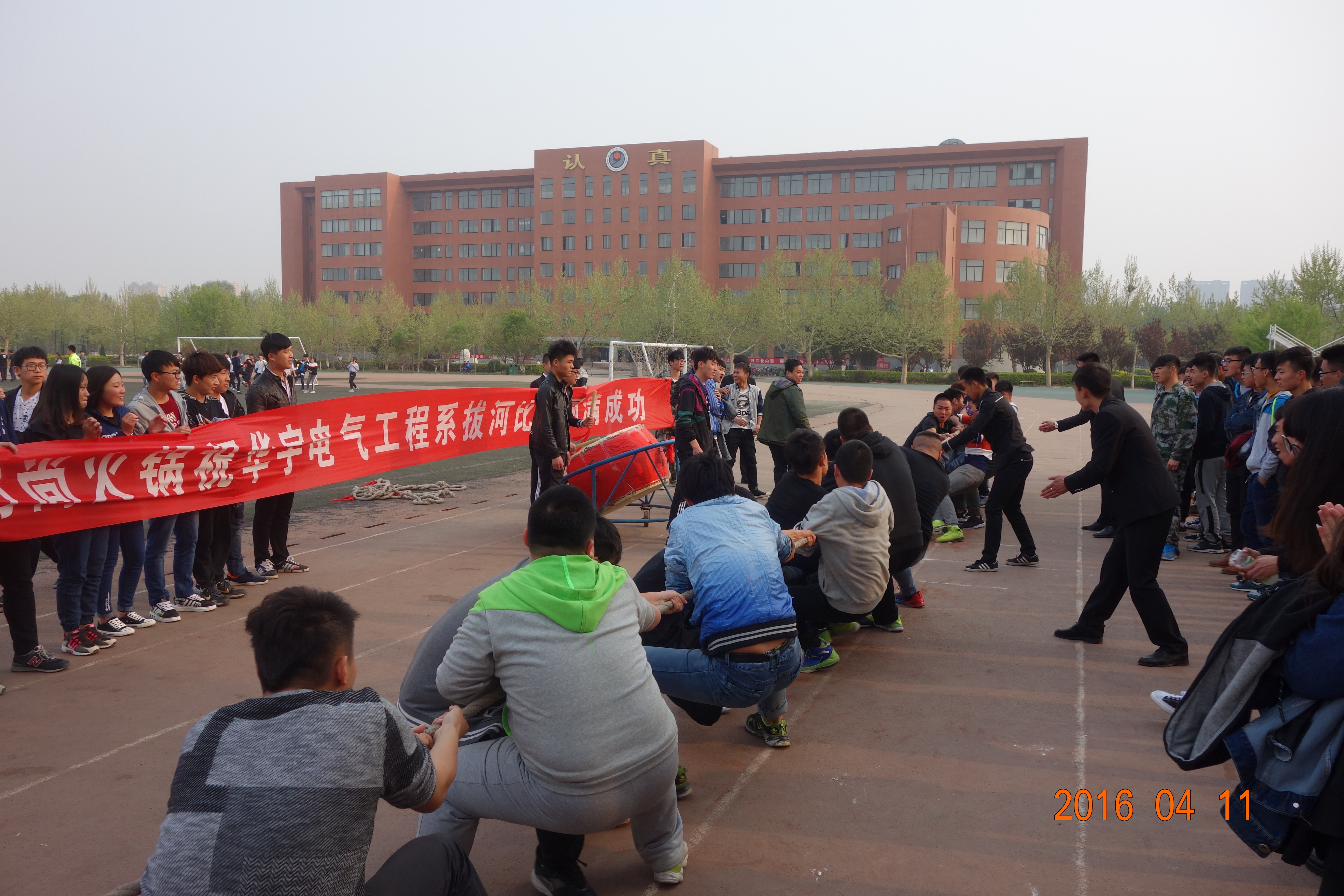 为丰富同学们的课余生活,2016年4月11日下午电气工程系拔河比赛在校运动场隆重举行。出席此次活动的有学生处谢晋磊老师,电气工程系团总支书记李俊老师及电气工程系全体辅导员老师。