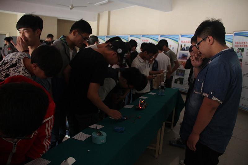 为进一步营造创新教育氛围,增强广大师生的创新意识,提高开展创新教育的水平。以首届大学生科技文化艺术节为契机,电气工程系于2015年4月8日至5月7日举办了电子产品制作DIY大赛,并于5月7日在十号楼一楼大厅举办了作品展。学院副院长戎卫国在系部处室负责同志的陪同下和学院部分师生代表一起兴致勃勃的参观了展览。