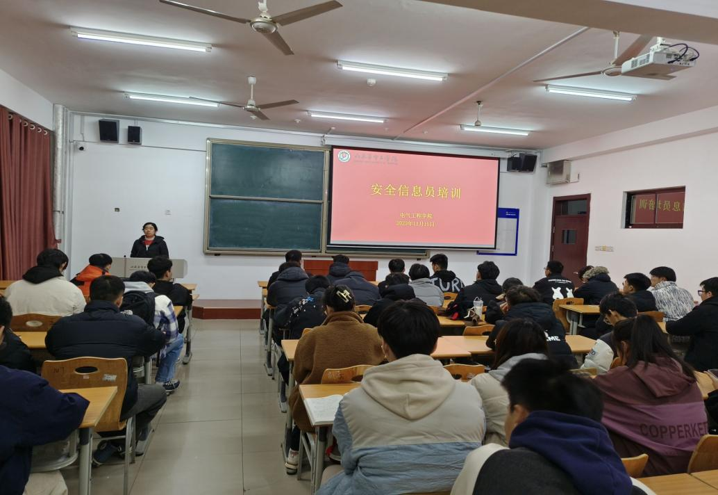 辅导员祝潇老师培训安全信息员要学会充分利用微信群、QQ群等网络渠道,深入学生群体,了解校园生活的方方面面,有效掌握学生思想状况。确保能够随时关注网络舆情,特别是在重大节日、敏感时期的学生思想动态,主动做好安全信息收集工作。安全信息员每周要主动排查各类安全隐患并上报,如果遇到影响安全稳定的情况,要在第一时间上报,避免安全事故的发生。