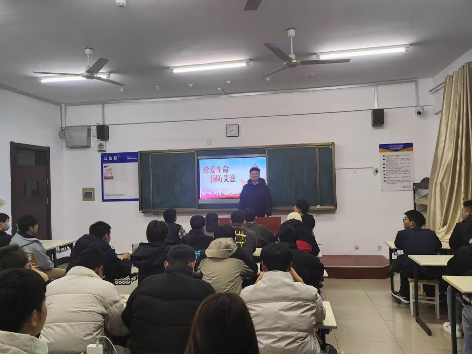 各班级召开预防艾滋病主题班会,介绍世界艾滋病日的由来和意义,引导学生了解艾滋病的传播途径和对人体的危害,掌握预防措施,引导学生不要歧视患病人员。