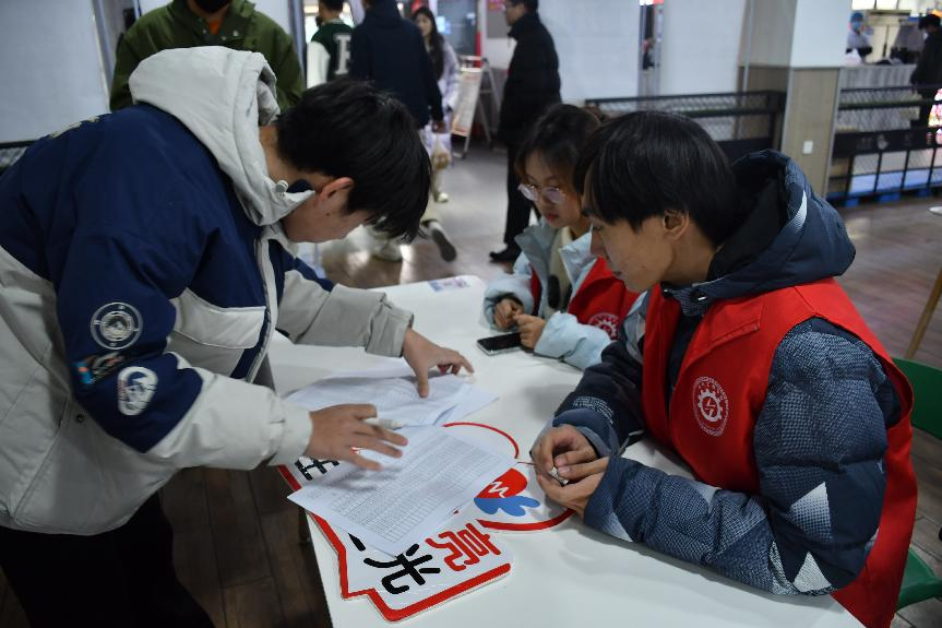 无偿献血是一种奉献,也是一种责任。在志愿者的指引下,学生有条不紊地排队填写表格、认真做好测量血压、采血化验等准备工作。在医务人员的指导下,让充满爱心的热血缓缓地流入一个个储血袋,用可再生的血液挽救不可重来的生命。