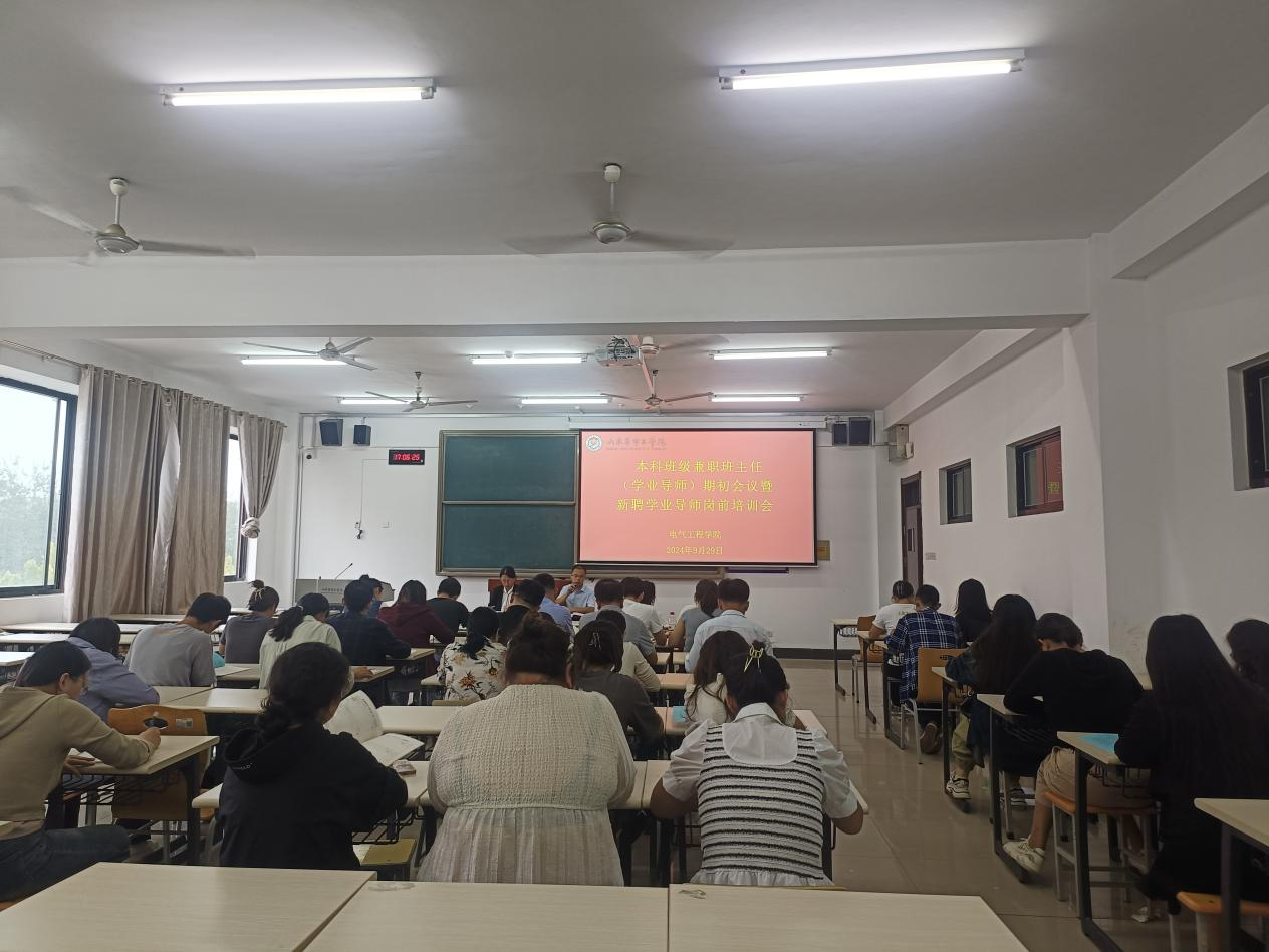 为更好地引导yl7703永利集团本科生专业学习,加强学生的创新、创造与科研能力,充分发挥专业教师在本科生培养过程中的指导作用,提高本科人才培养质量。yl7703永利集团于2024年9月29日下午17:00在10号楼405召开了本学期本科班级兼职班主任(学业导师)期初会议暨新聘学业导师岗前培训会,副院长王东盈出席此次会议,学院全体本科学业导师及辅导员参加。