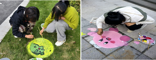 彩绘过程中,不少居民驻足观看,孩子们主动提出创意想法,志愿者虚心采纳并邀请小朋友参与了简单涂色环节,现场互动频繁、氛围热烈。