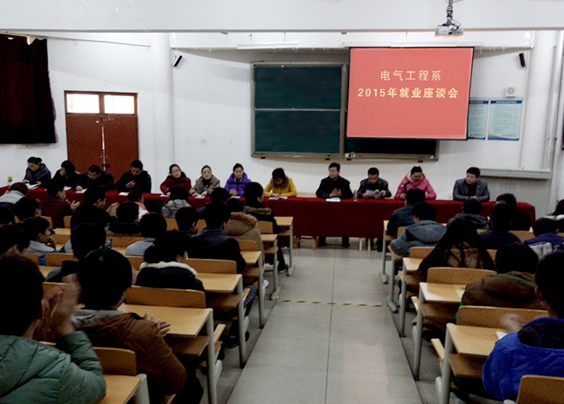 为了使我系毕业生能更好的就业,继续做好我系毕业生就业指导工作,进一步促进我系2016届毕业生顺利就业, 10月27日下午电气工程系在10号楼F101教室举行了2015年学生就业座谈会。系领导、相关辅导员及2013级全体毕业生参加了座谈会。