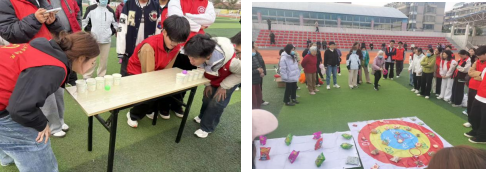 志愿者服务队协同社区书记共同策划并组织了螃蟹走路、趣味套圈、吹球跳杯、猜谜语、毽子比拼等适合中、老年人参与的趣味游戏项目,活动现场气氛热烈,欢声笑语不断。